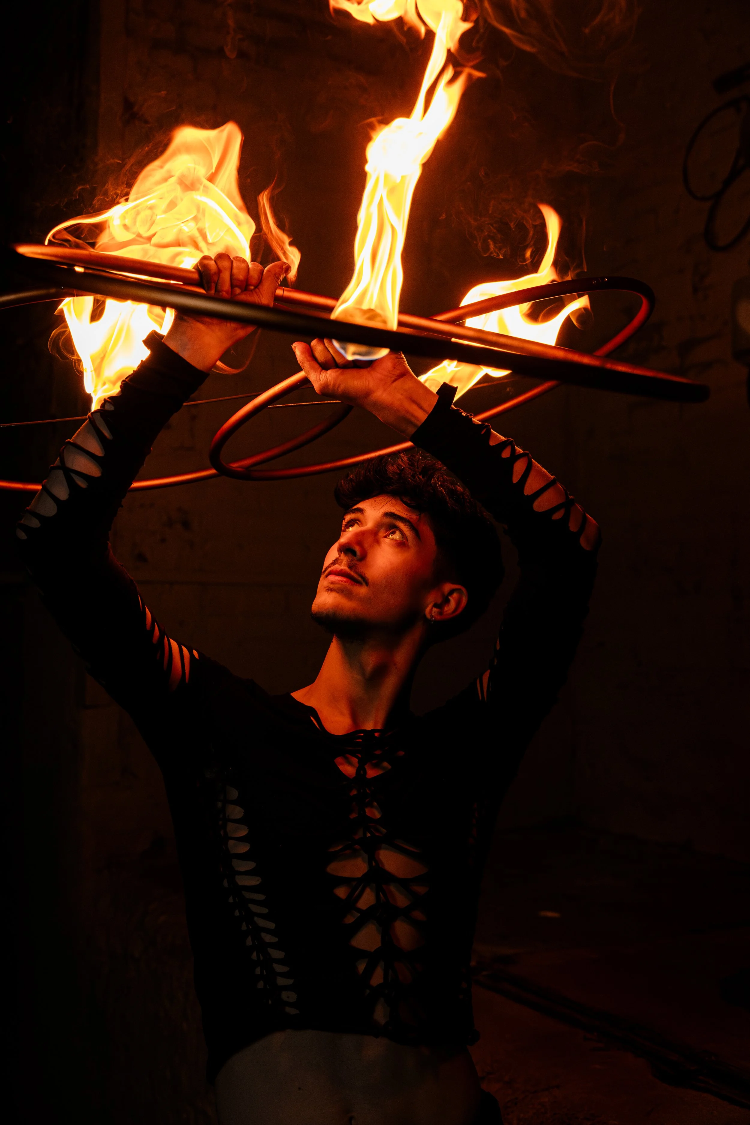 Chris specializes in various fire props such as Hoops, Fans, Double Staff, and Buugeng Staff.